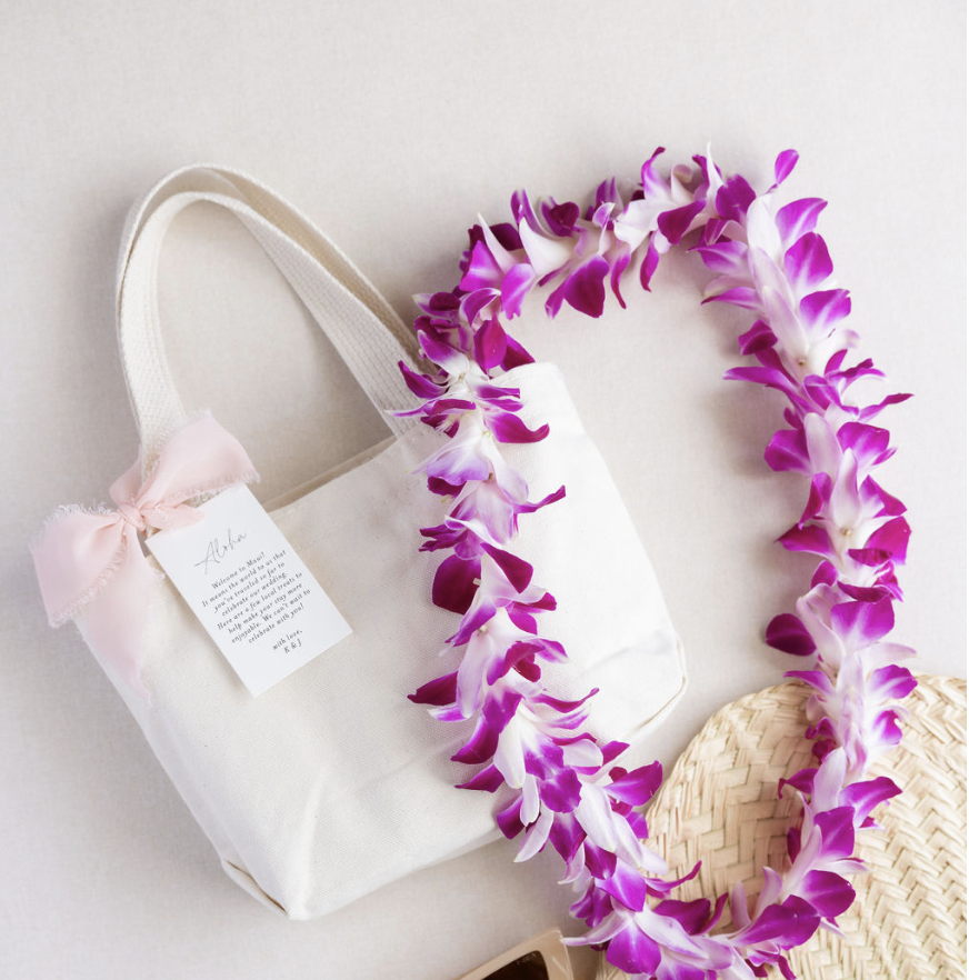 Gift price $50 per gift for unbranded tote $55 each for customized tote (single color print / allow 3+ weeks for customization) Minimum 15 gift minimum Welcome note tag You may choose to provide your own notes, or use our standard welcome tags for $35 Ribbon You may choose to provide your own ribbon, or we can provide a ribbon of your color choice for $35